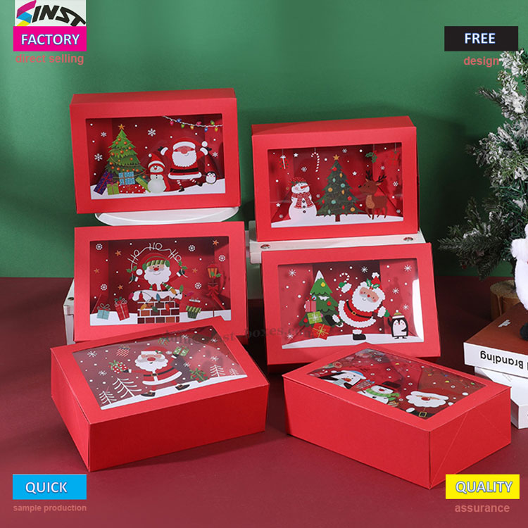 ఈ క్రిస్మస్ మిఠాయి పెట్టెలో వెచ్చని ఎరుపు నేపథ్యం, దీర్ఘచతురస్రాకార పెట్టె శరీరం మరియు శీతాకాలపు అద్భుత కథను చూసేందుకు ఒక విండో వంటి పారదర్శక విండోను కలిగి ఉంటుంది. ఈ క్రిస్మస్ మిఠాయి పెట్టె హార్డ్ పేపర్ మెటీరియల్తో తయారు చేయబడింది, ఇది లోపల క్యాండీలను ప్రదర్శించగలదు మరియు కొంత స్థిరత్వాన్ని కలిగి ఉంటుంది. ఇది చాక్లెట్, డెజర్ట్లు, కుకీలు, గమ్మీలు మొదలైన రోజువారీ వస్తువులకు అనుగుణంగా ఉంటుంది; ఇది మిఠాయి కోసం అందమైన కంటైనర్ మాత్రమే కాదు, డెస్క్టాప్ క్రిస్మస్ అలంకరణ కూడా. దీన్ని వ్యక్తిగత ఉపయోగం కోసం ప్రజలకు అందించడం వల్ల హాలిడే మూడ్ను ప్రకాశవంతం చేయవచ్చు, ప్రతి తీపిని వేడుకల స్ఫూర్తితో చుట్టి ఉంటుంది.